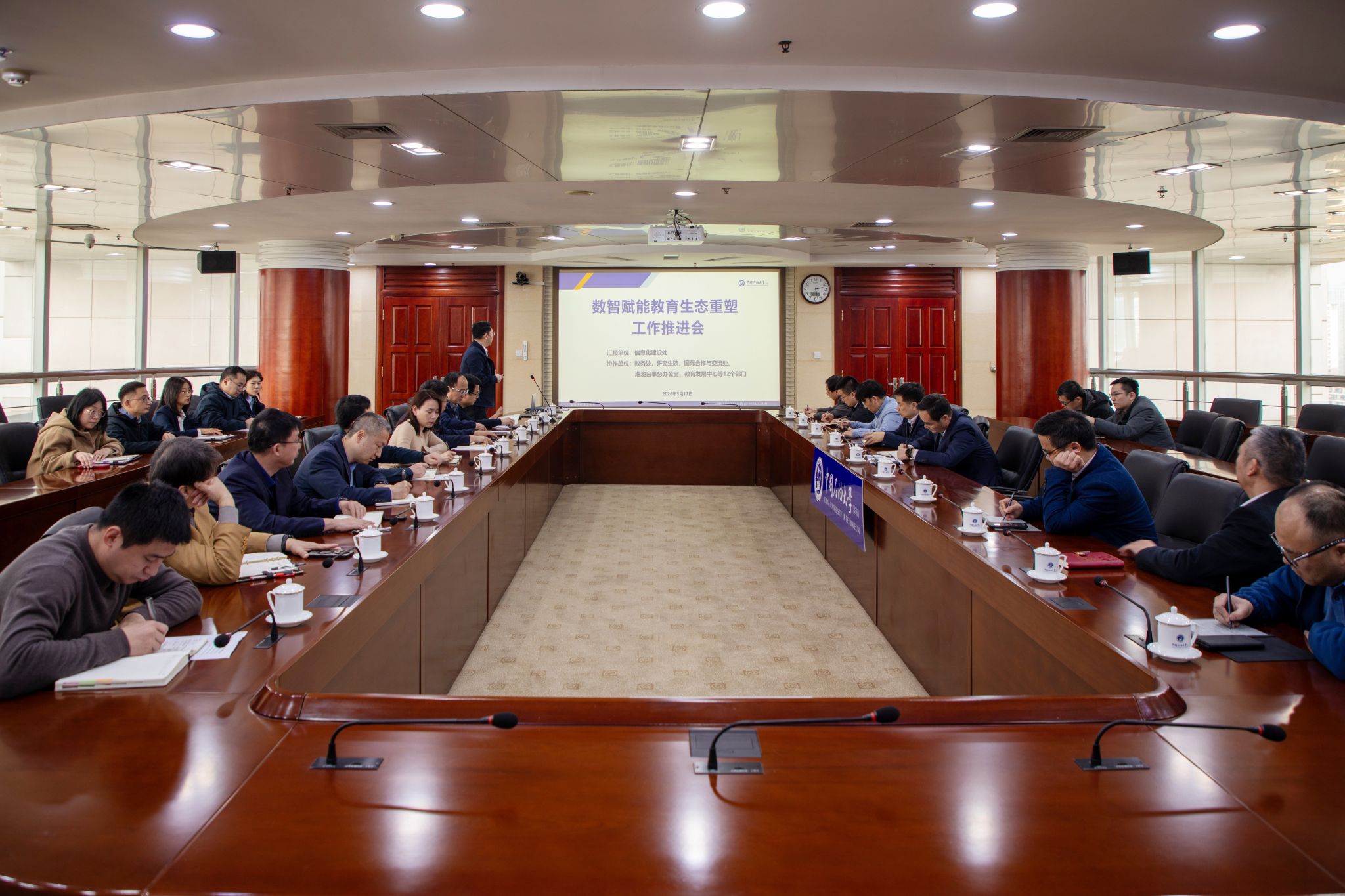 【本站讯】为深入贯彻国家教育数字化战略行动部署,加速数智技术与教育教学的深度融合,3月17日,学校召开数智赋能教育生态重塑工作推进会,副校长于连栋及相关部门负责人参加会议。