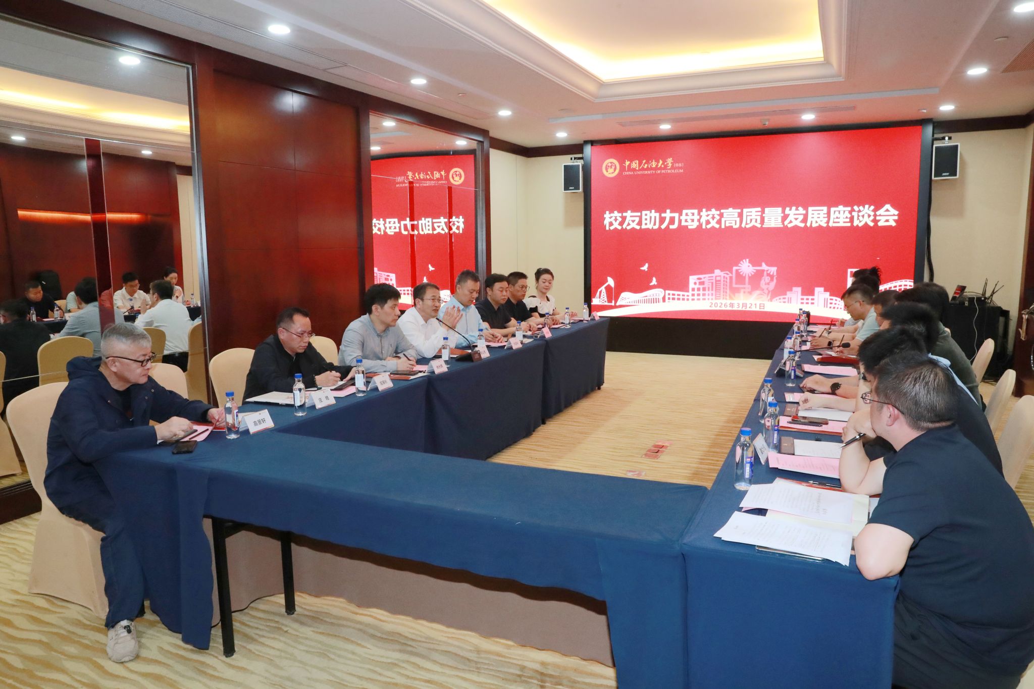 会后,学校组织广州校友代表参加助力母校高质量发展座谈会,胡义贵一行与来自中国石化广州石化、中国石化销售华南公司、华油集团华南公司、南方电网等企业的校友代表,就学校科技育人服务广州重点企业、校友参与招生就业产教融合等工作进行深入座谈交流,校友们对学校发展积极建言献策。