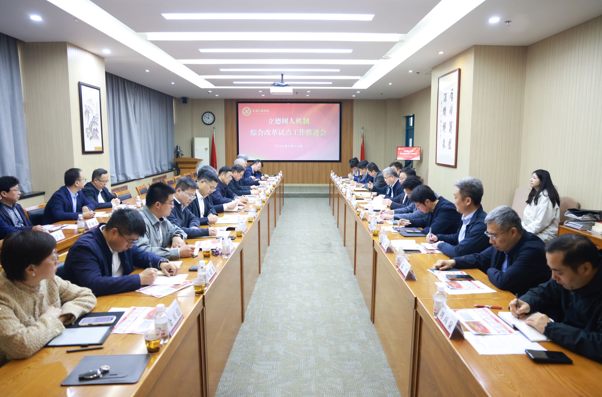 党委宣传部、石油工程学院分别就立德树人综合机制改革的背景要求、建设思路、进展成效等情况进行工作汇报。各相关单位立足职能职责,围绕如何更好推进试点改革、提升育人实效开展深入研讨,提出思路举措。