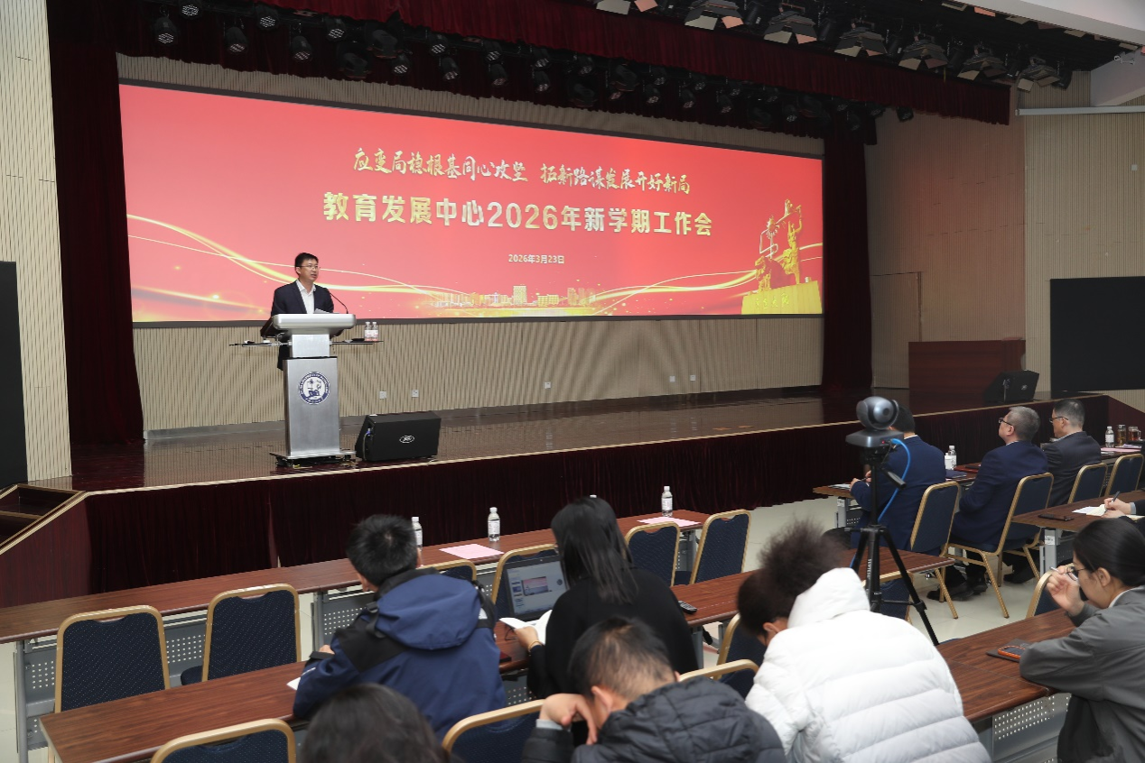 【本站讯】3月23日,教育发展中心召开新学期工作会,总结2025年主要成绩,分析研判新形势新挑战,安排部署2026年重点工作。会议提出,中心广大干部员工要同心谋发展、开辟新“赛道”,奋力推进中心各项事业开创“十五五”发展新局面。