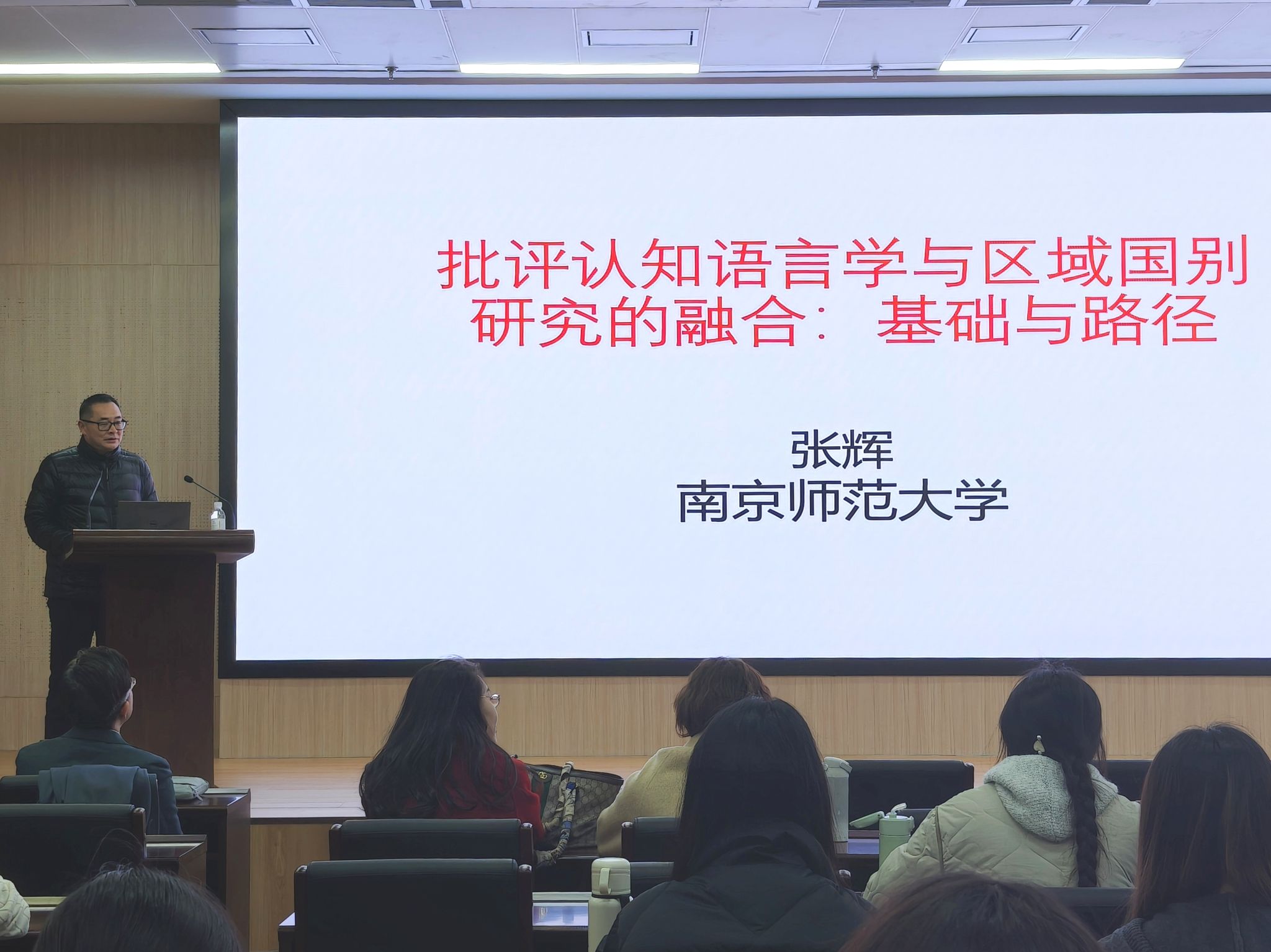【本站讯】3月19日,南京师范大学二级教授、中国英汉语比较研究会认知语言学专业委员会会长张辉教授应邀做客学校第47期“石大人文讲坛”,为师生作题为“批评认知语言学与区域国别研究的融合:基础与路径”的学术讲座。本次讲坛由文科建设处主办,外国语学院承办,外国语学院院长毛浩然教授主持。