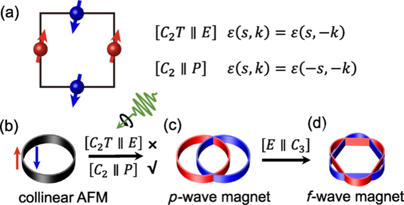 图1 圆偏光在共线反铁磁中实现奇宇称磁性的对称性机制