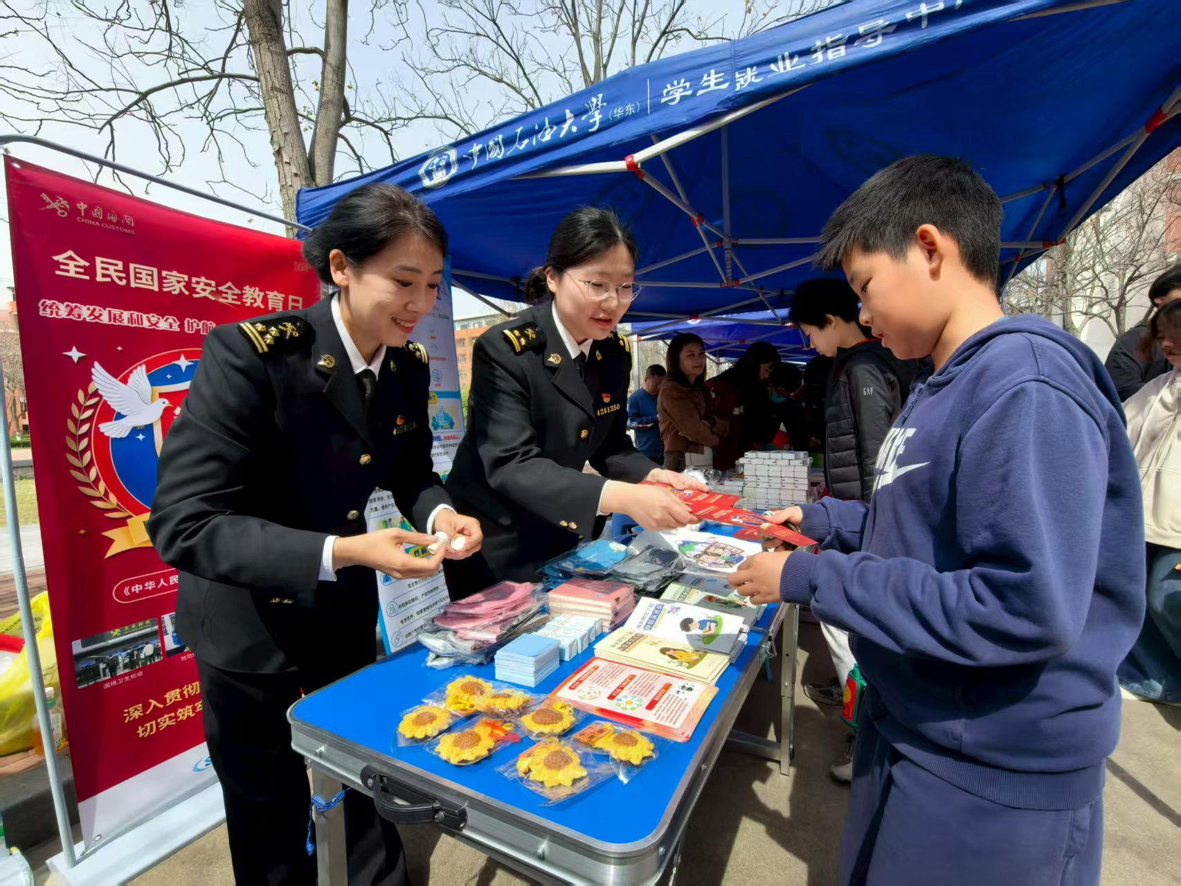 4月11日,中华人民共和国黄岛海关联合青岛海关卫生检疫处及西海岸新区疾控中心,走进中国石油大学(华东)开展全民国家安全教育日宣传活动。